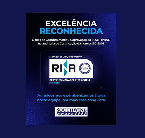 Parabenizamos toda a equipe pela conquista que reafirma o compromisso da SouthWind com a excelência e a qualidade em seus processos!